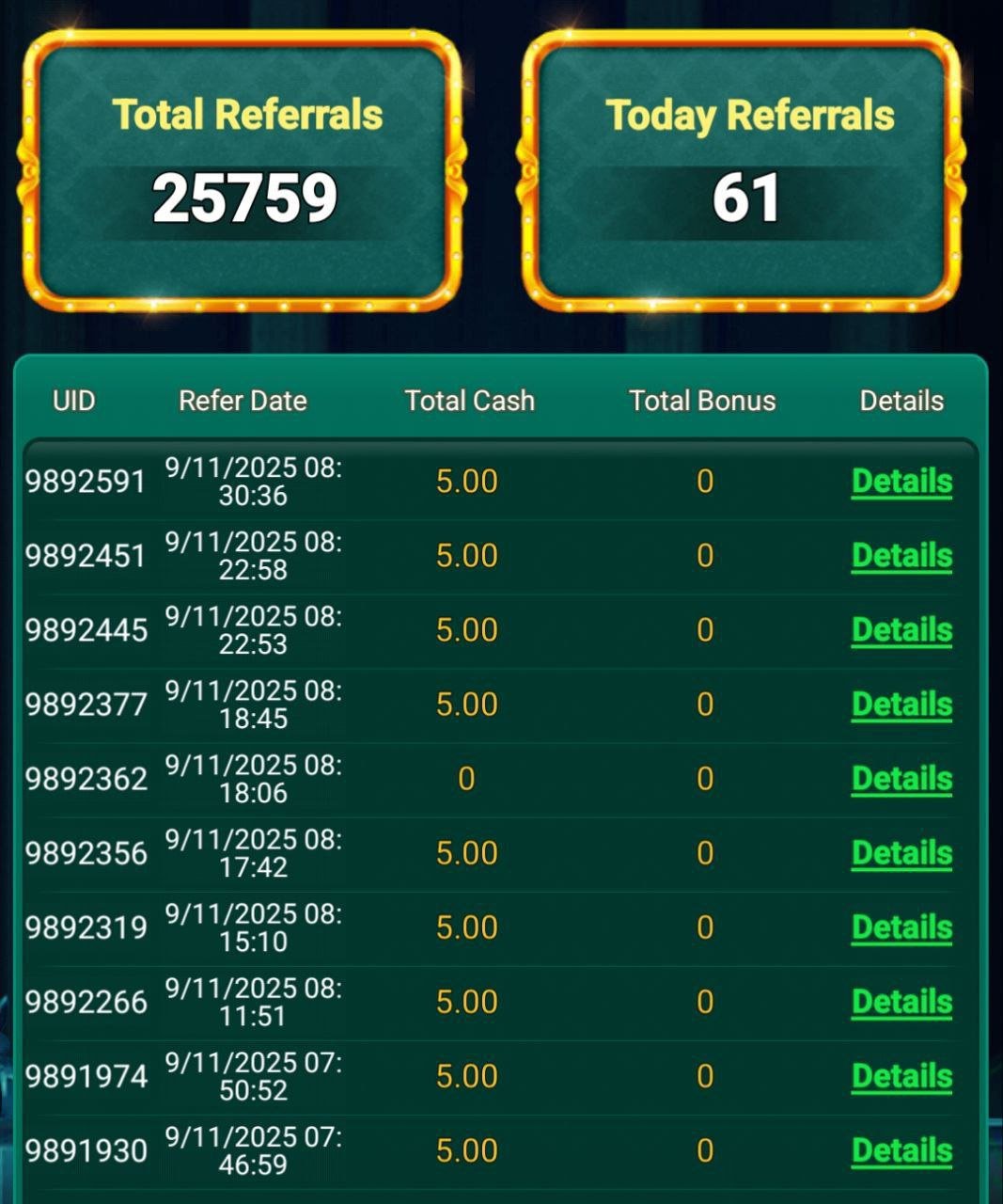 Free Cash Bonus को Claim करने के लिए आपको इस Game को अधिक से अधिक लोगों को अपना Referral Link शेयर करना होगा तभी आपका Freecash Bonus Complete होगा और आप इसको withdrawal कर सकते हैं |
